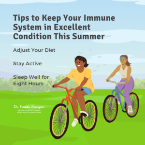 So how do you keep yourself healthy and illness-free this summer? Below are a few tips that can help strengthen your immune system and help it fight the bad bacteria, viruses, and germs, that threaten to make you sick.